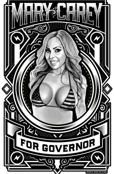 It's time for the California Governor Recall! Mary Carey is going to run again and this time it's political! Check out her line of attire designed by graphic artist Shane Rice at shanericestudio.com...